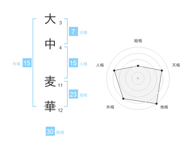 大中 麦華さんの総格は30画の2点!