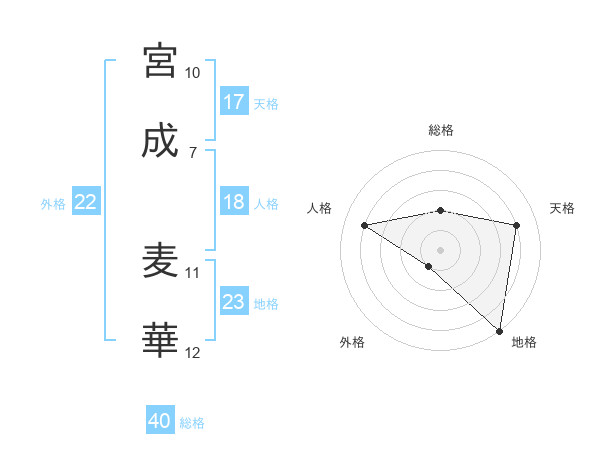 宮成 麦華さんの外格は22画の1点!