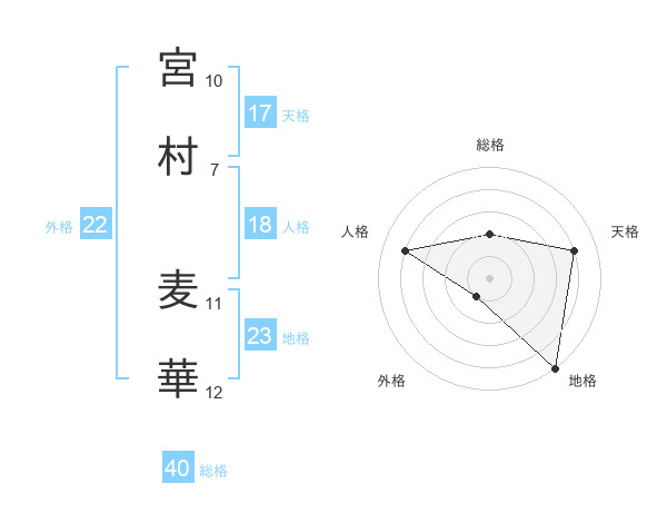 宮村 麦華さんの天格は17画の4点!