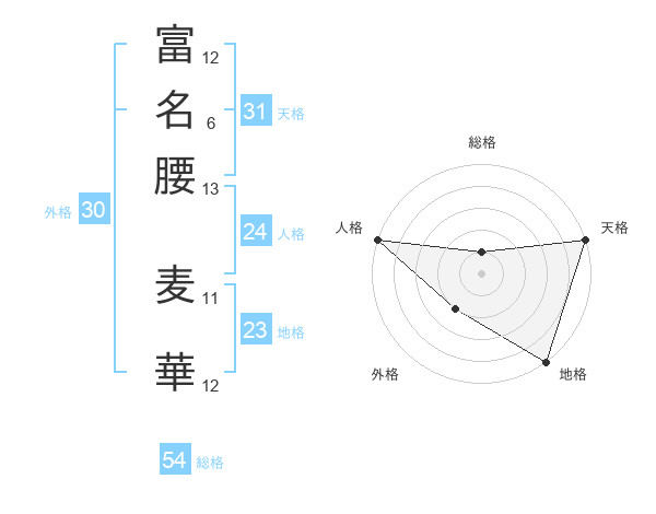 富名腰 麦華さんの天格は31画の5点!