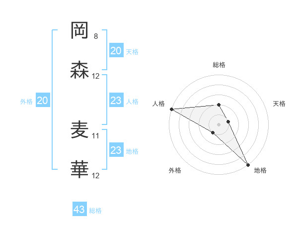 岡森 麦華さんを姓名の画数から五運を鑑定