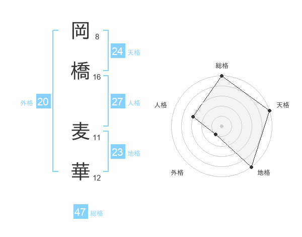 岡橋 麦華さんの総格は47画の5点!