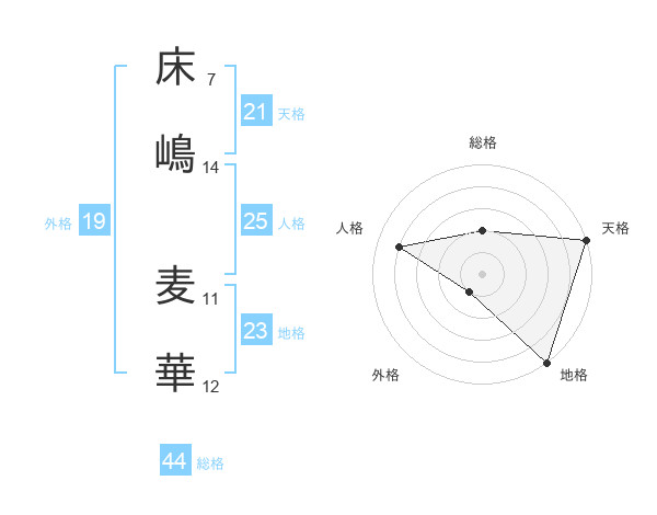 床嶋 麦華さんを姓名の画数から五運を鑑定