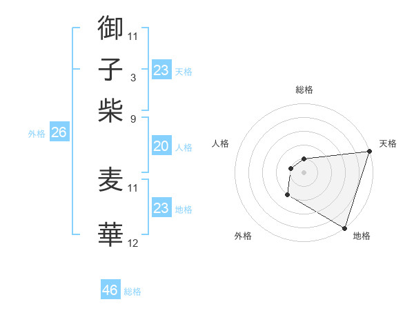 御子柴 麦華さんの天格は23画の5点!