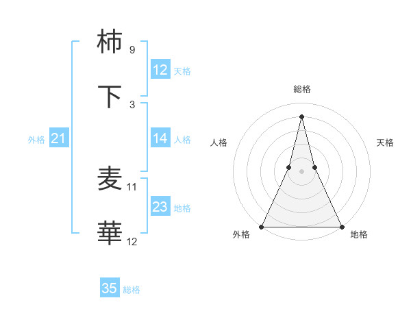 柿下 麦華さんの総格は35画の4点!