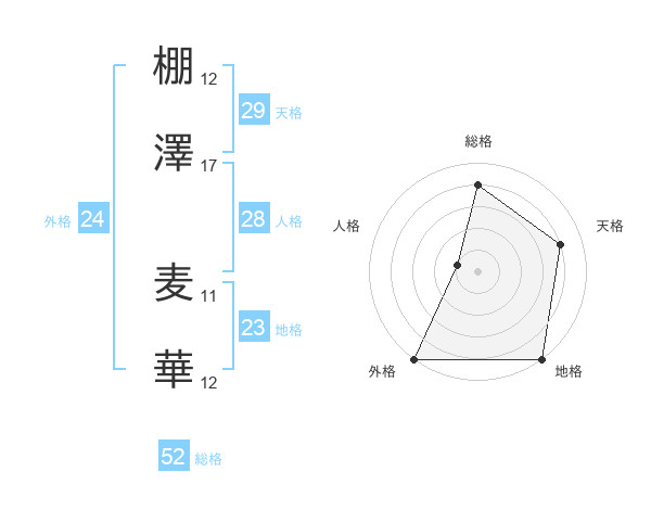 棚澤 麦華さんの総格は52画の4点!