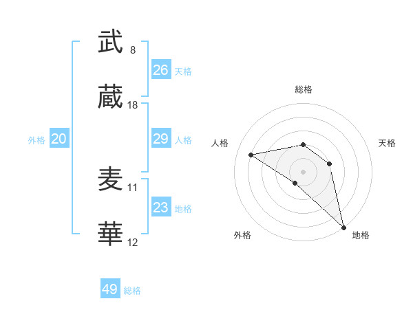 武蔵 麦華さんの総格は49画の2点!