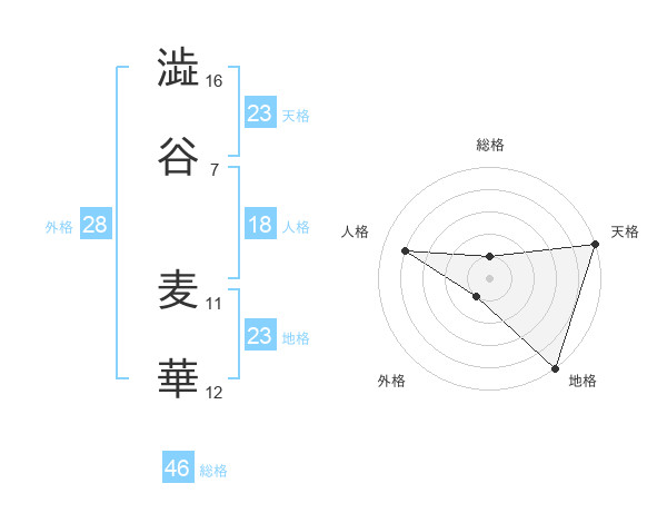 澁谷 麦華さんの天格は23画の5点!