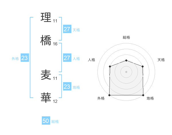 理橋 麦華さんを姓名の画数から五運を鑑定