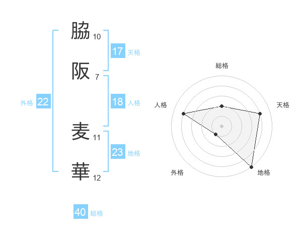 脇阪 麦華さんの総格は40画の2点!