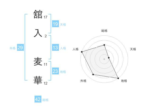 舘入 麦華さんを姓名の画数から五運を鑑定