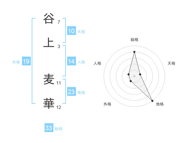 谷上 麦華さんの総格は33画の4点!
