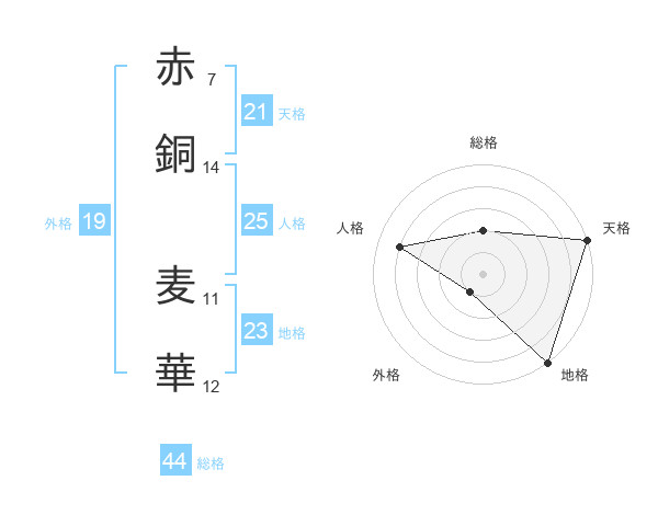 赤銅 麦華さんを姓名の画数から五運を鑑定