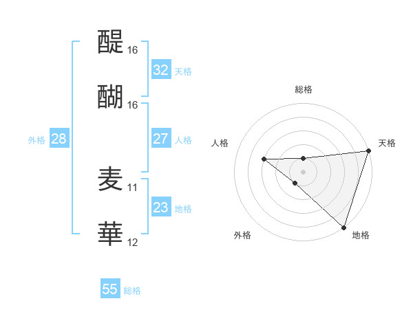 醍醐 麦華さんの天格は32画の5点!