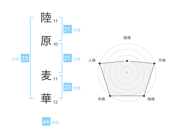 陸原 麦華さんの天格は21画の5点!