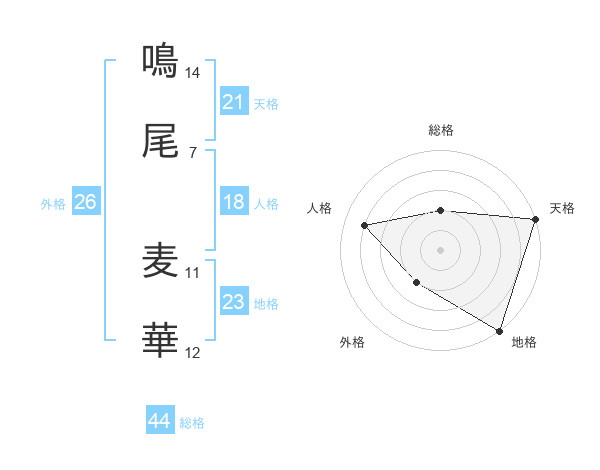 鳴尾 麦華さんを姓名の画数から五運を鑑定
