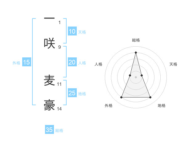 一咲 麦豪さんを姓名の画数から五運を鑑定