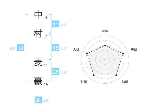 中村 麦豪さんの総格は36画の3点!