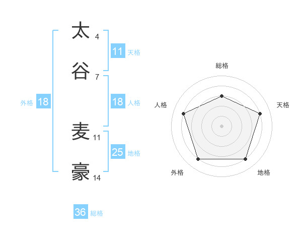太谷 麦豪さんの総格は36画の3点!