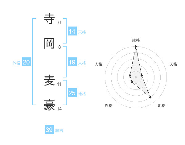 寺岡 麦豪さんの総格は39画の5点!
