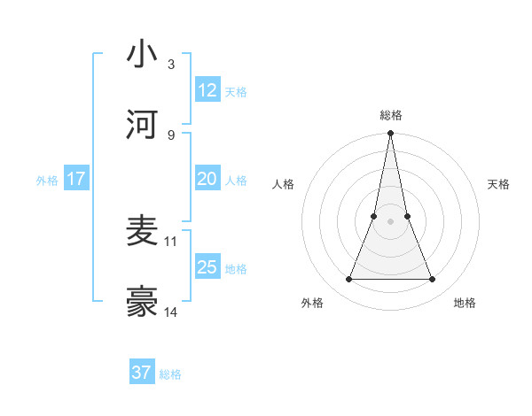 小河 麦豪さんを姓名の画数から五運を鑑定