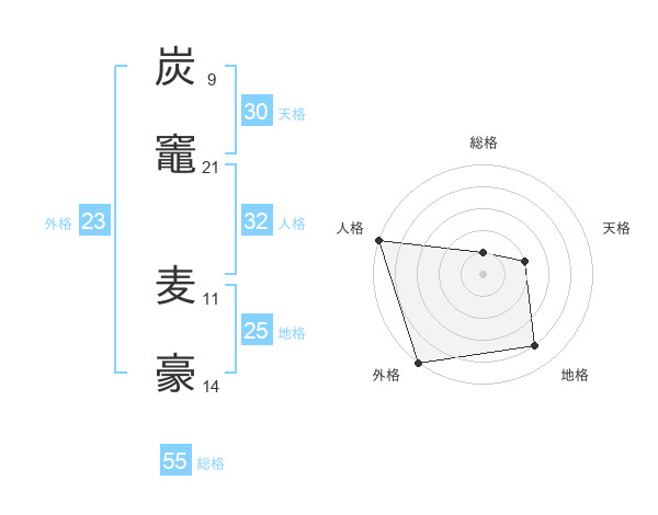 炭竈 麦豪さんを姓名の画数から五運を鑑定