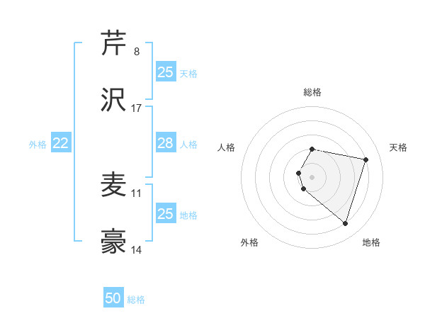 芹沢 麦豪さんを姓名の画数から五運を鑑定