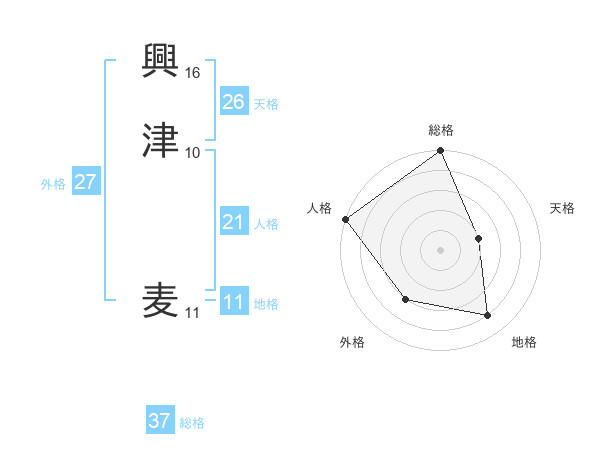 興津 麦さんの総格は37画の5点!