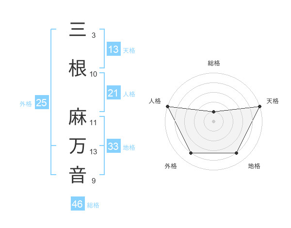 三根 麻万音さんを姓名の画数から五運を鑑定