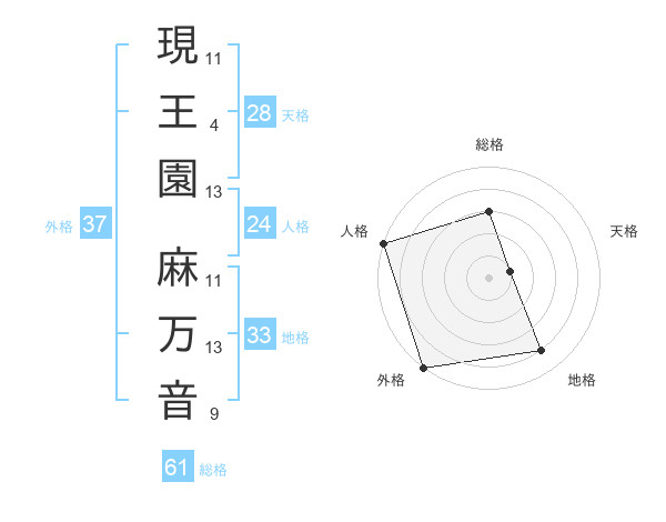 現王園 麻万音さんを姓名の画数から五運を鑑定