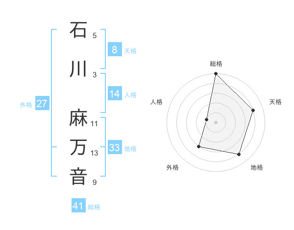 石川 麻万音さんを姓名の画数から五運を鑑定