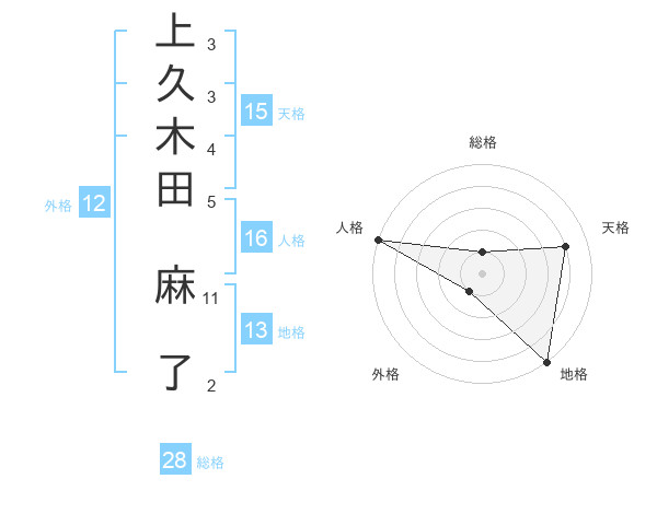 上久木田 麻了さんの天格は15画の4点!