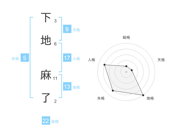 下地 麻了さんの総格は22画の1点!