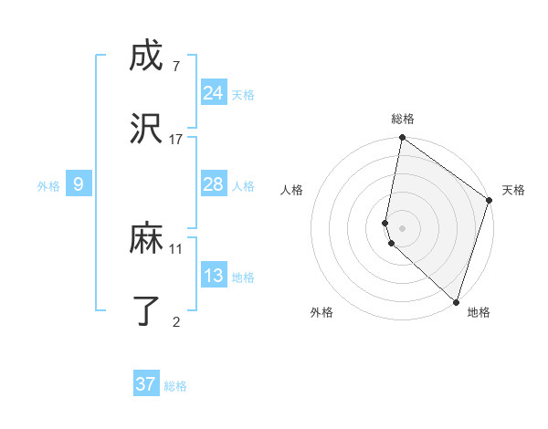 成沢 麻了さんを姓名の画数から五運を鑑定