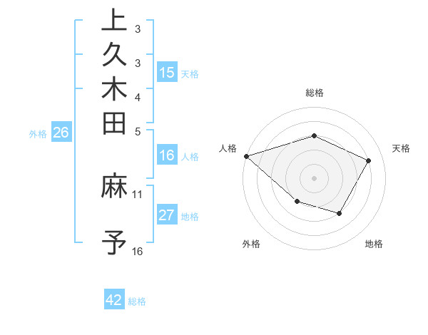 上久木田 麻予さんを姓名の画数から五運を鑑定