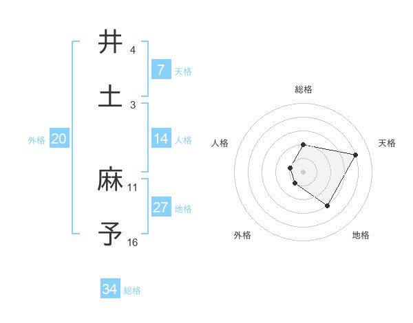 井土 麻予さんの天格は7画の4点!
