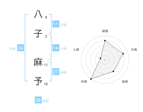 八子 麻予さんの総格は38画の4点!