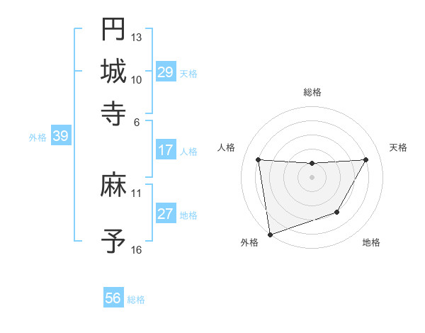 円城寺 麻予さんを姓名の画数から五運を鑑定