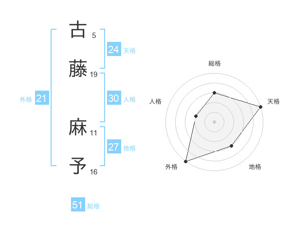 古藤 麻予さんを姓名の画数から五運を鑑定