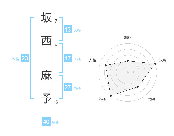 坂西 麻予さんを姓名の画数から五運を鑑定