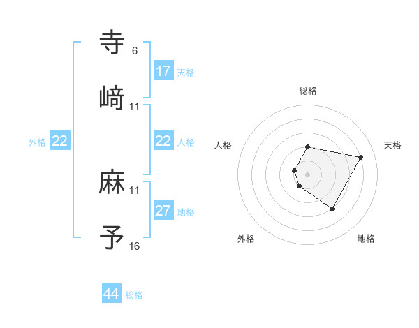 寺﨑 麻予さんの天格は17画の4点!