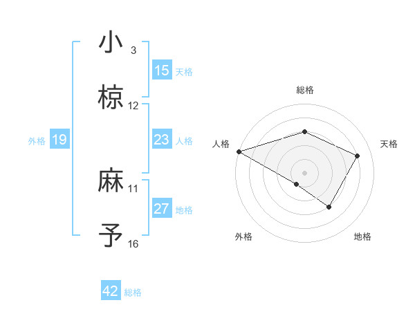 小椋 麻予さんを姓名の画数から五運を鑑定