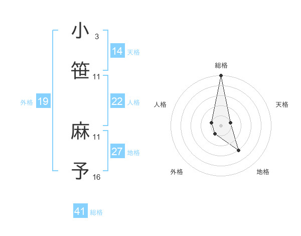 小笹 麻予さんを姓名の画数から五運を鑑定