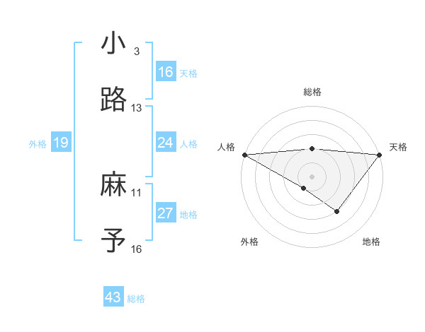 小路 麻予さんの天格は16画の5点!