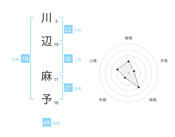 川辺 麻予さんを姓名の画数から五運を鑑定