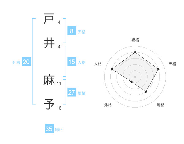 戸井 麻予さんの総格は35画の4点!