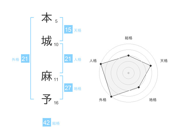 本城 麻予さんの人格は21画の5点!