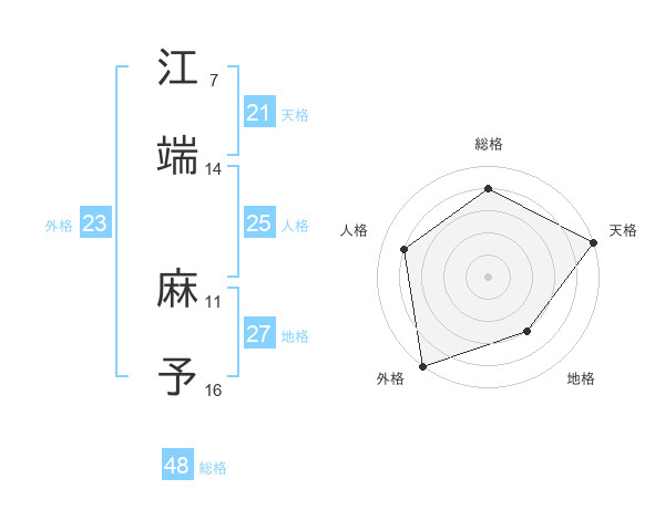 江端 麻予さんの天格は21画の5点!