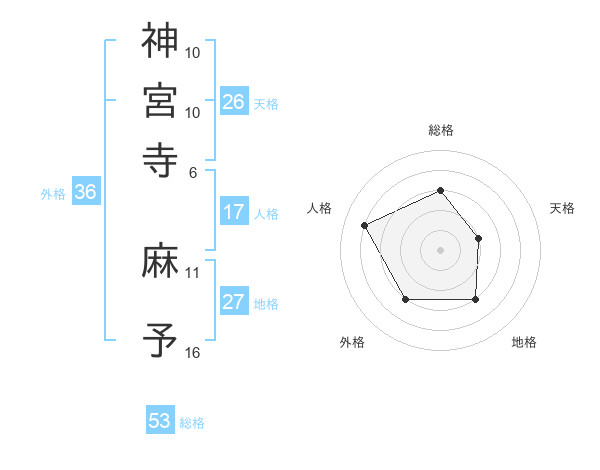 神宮寺 麻予さんを姓名の画数から五運を鑑定