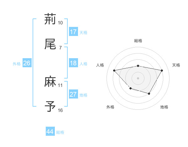 荊尾 麻予さんの総格は44画の2点!
